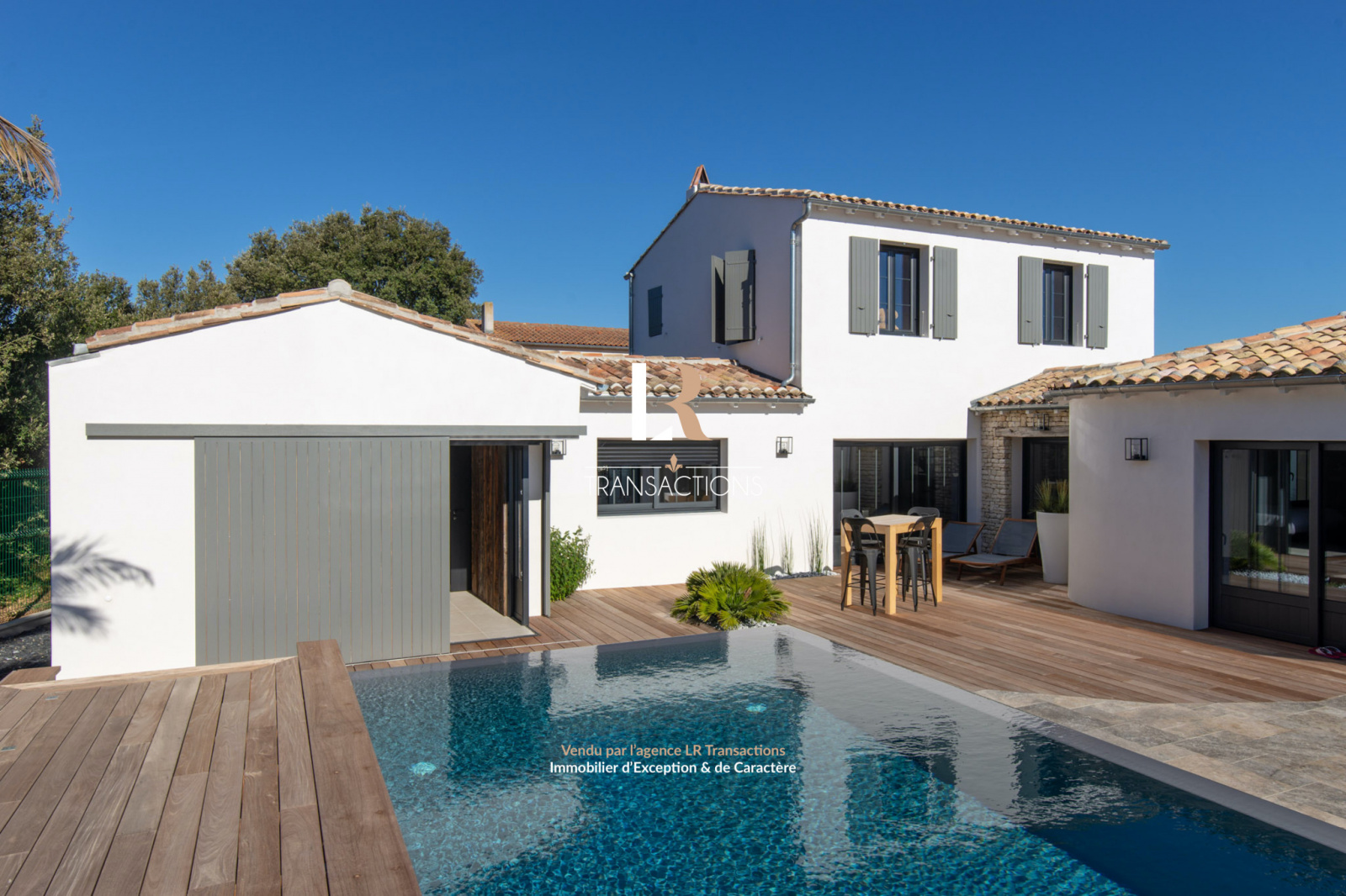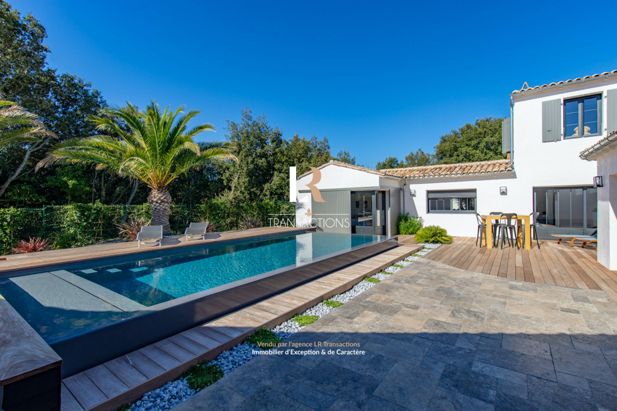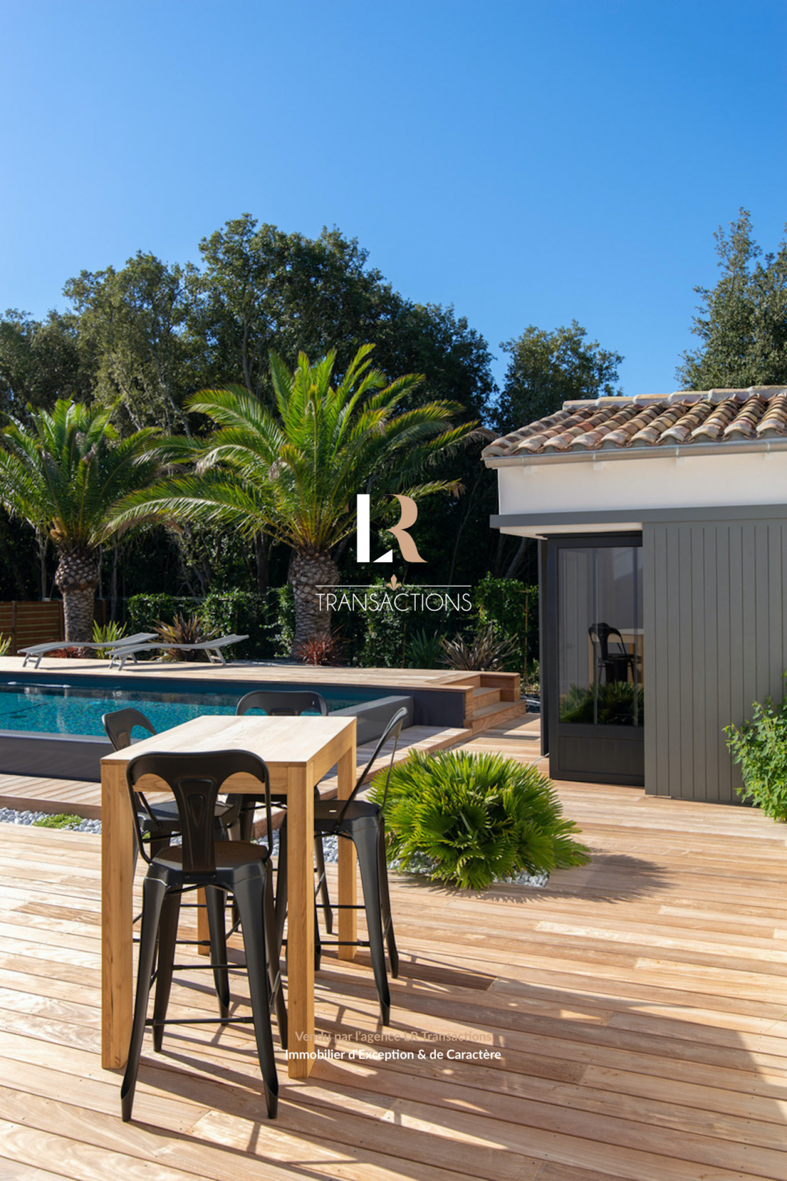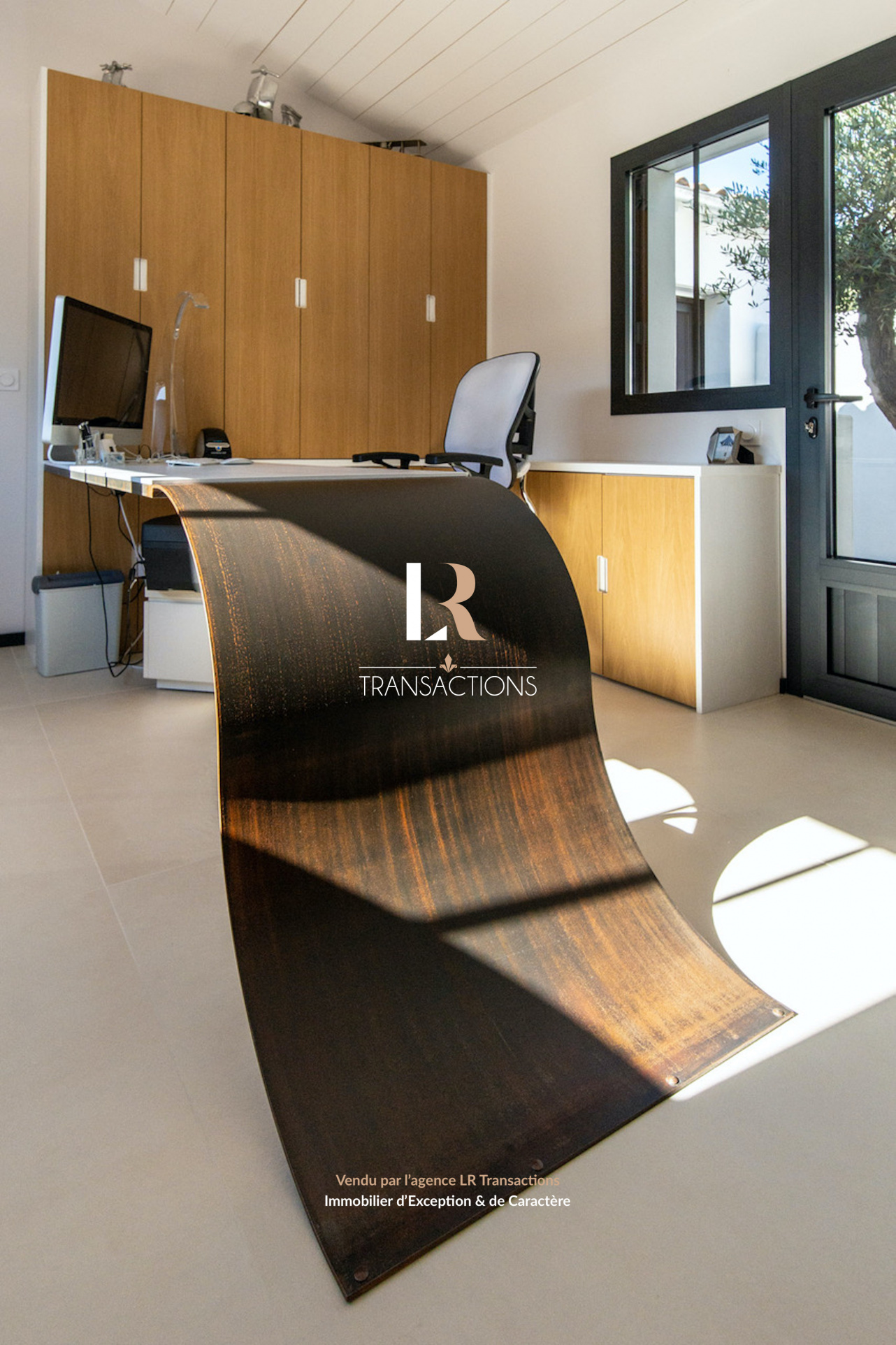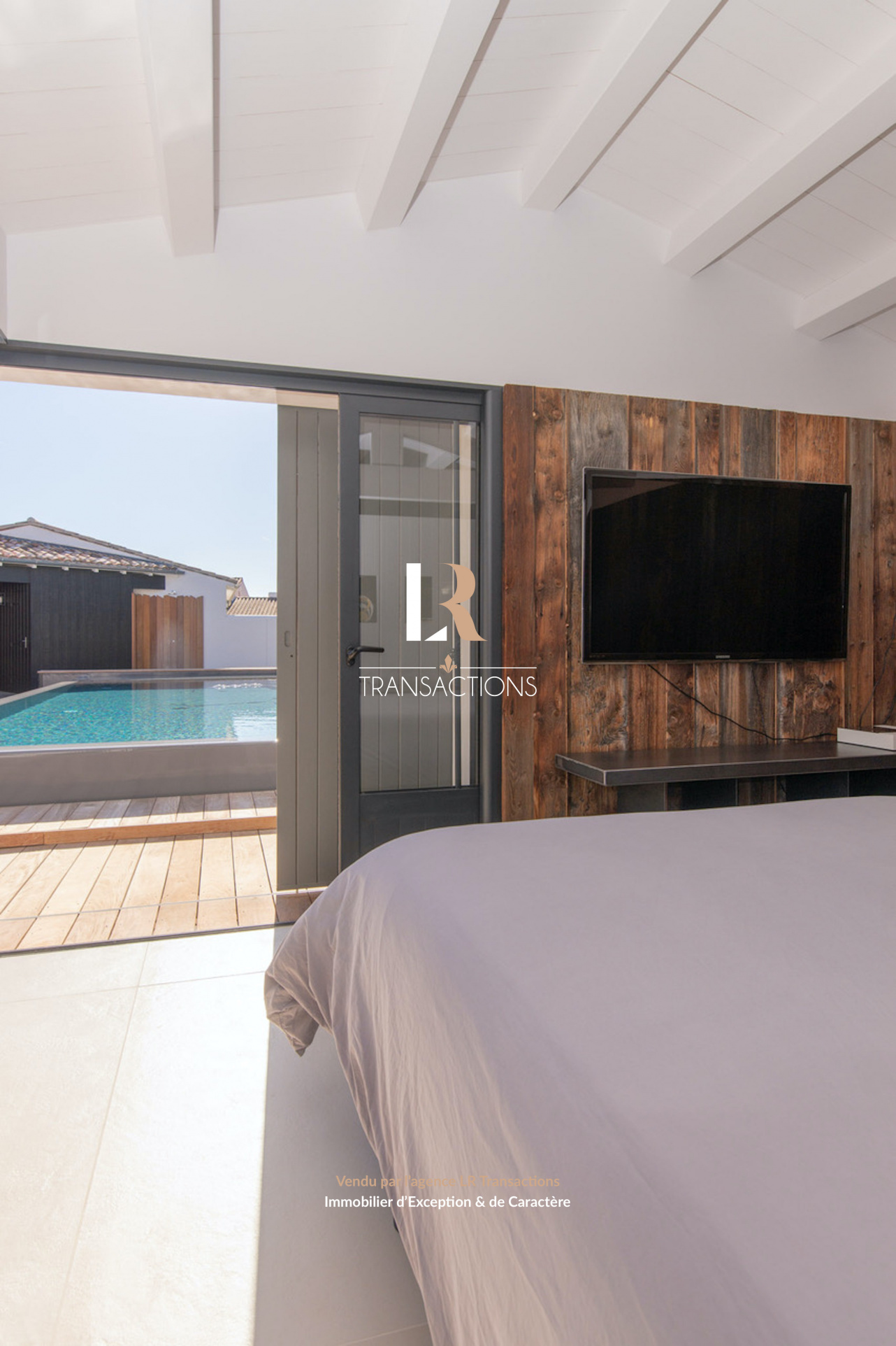 En plein coeur du village réputé de Rivedoux-plage, à 200 mètres de ses commerces et son joli marché, on découvre une sublime villa contemporaine à l'architecture très appréciée par la clientèle rhétaise : pierres apparentes, terrasse en pierre de Turquie, bois exotiques ou vieillis, acier, tuiles anciennes.. que l'architecte à su marier avec exigence et perfectionnisme rendant unique cette demeure.