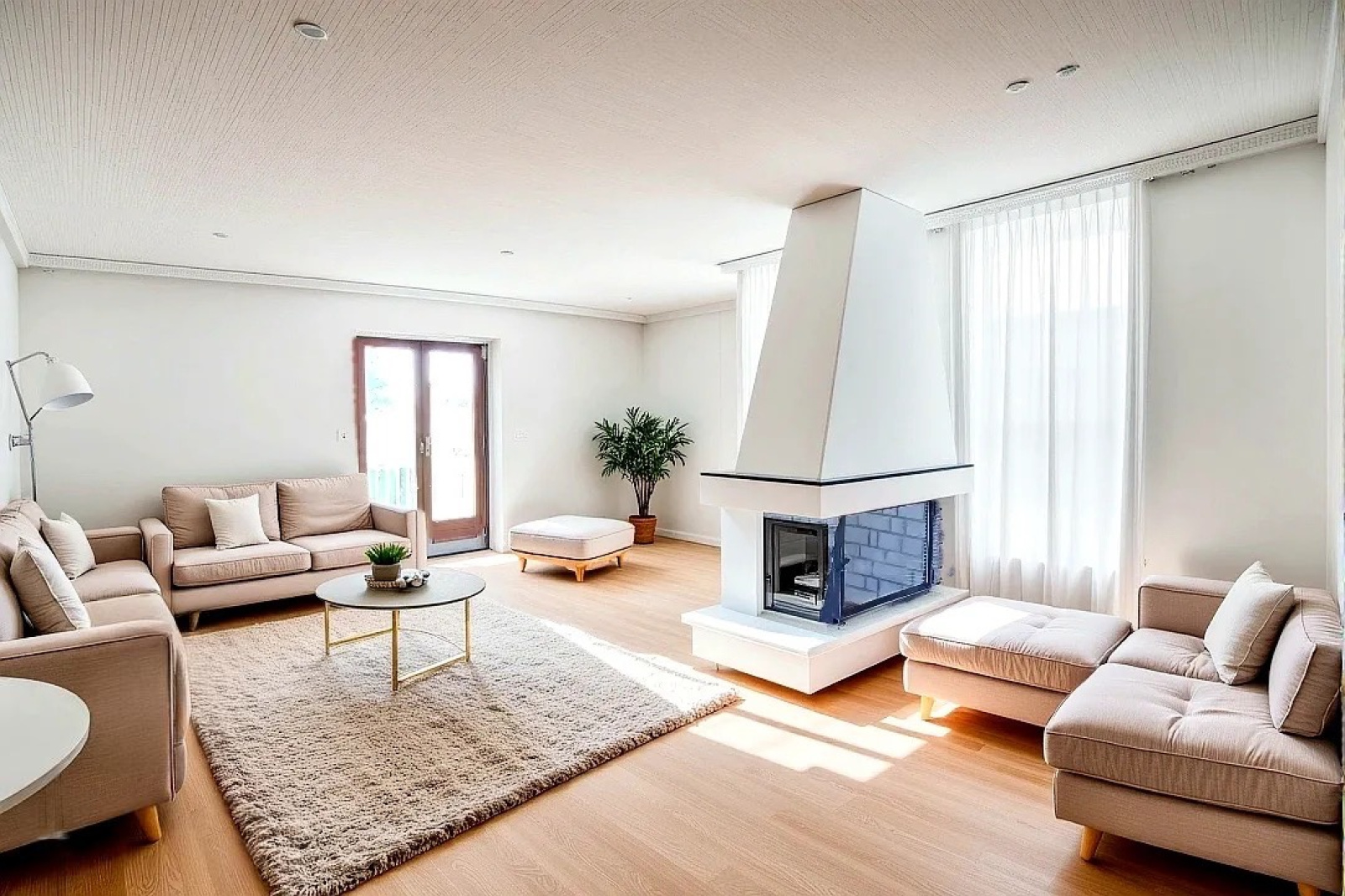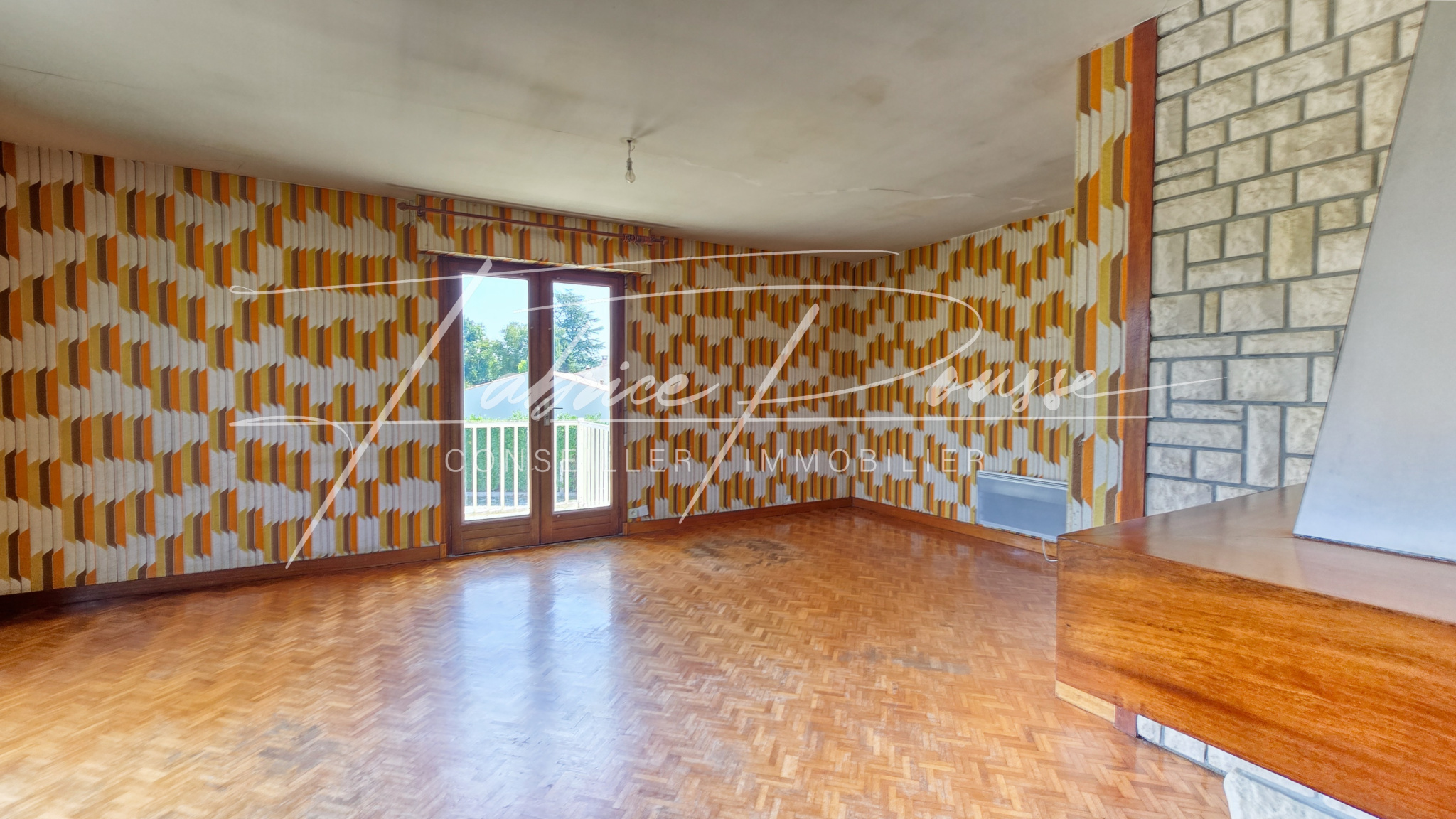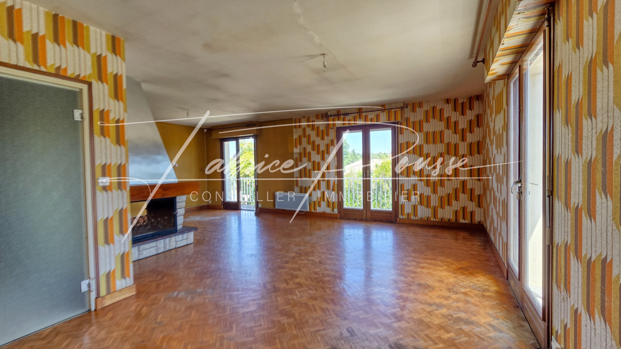 Une vastepièce de vie de plus de 40 m²avec cheminée et accès balcon